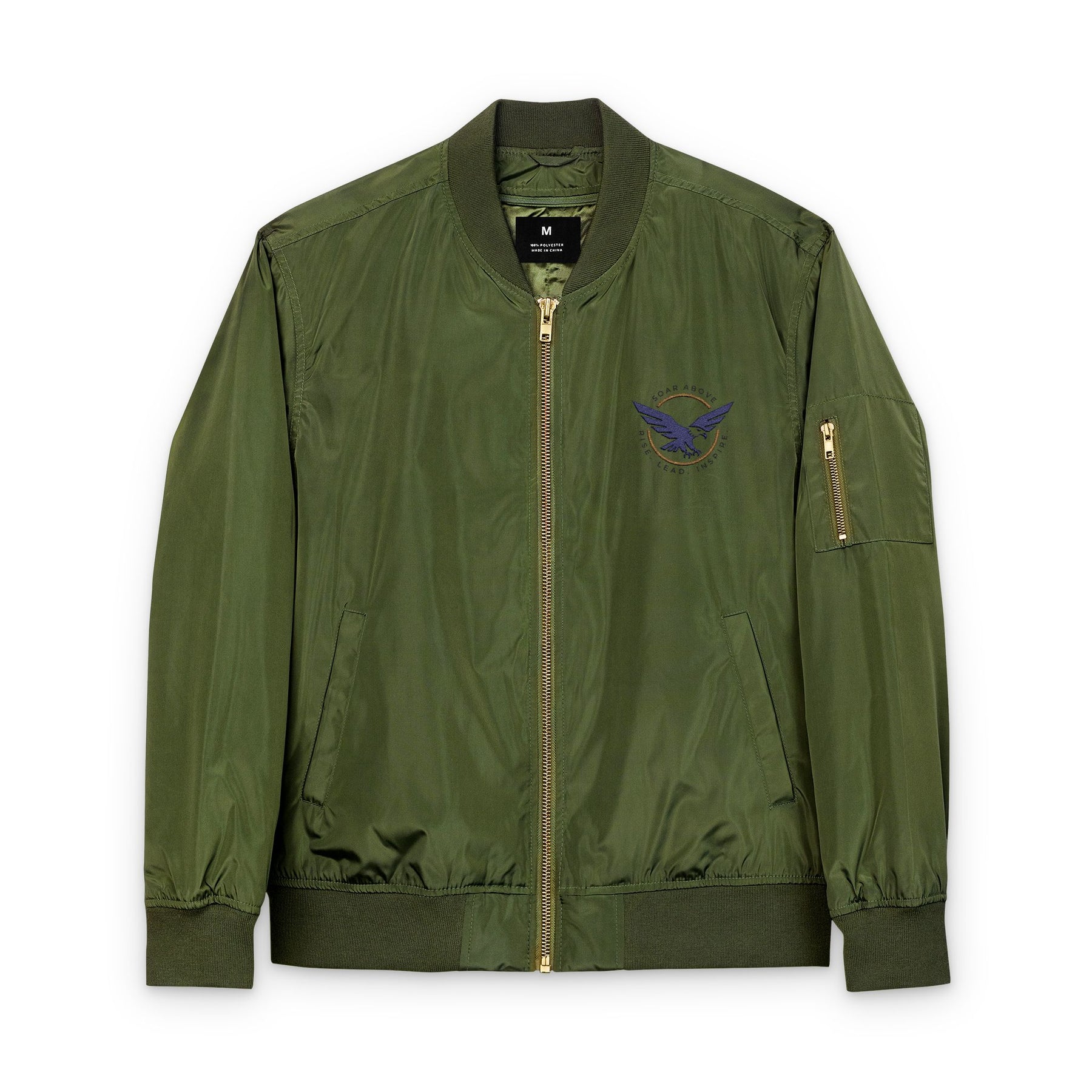 The jacket features a special inner zip pocket that neatly hides the back of your embroidery design, ensuring a sleek finish both inside and out. This bomber jacket not only looks great but also makes an eco-friendly statement with every wear.